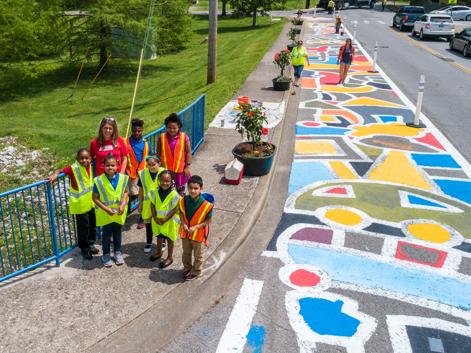 Stephen Schween, our drone pilot, does his own walking & biking around East Nashville. Typically, he partakes on his way to work or with his kids, so this was a great way to help out in his own neighborhood. Judging from the photos, it looks like everyone had a great time participating in the project. It was a huge success and benefited the children who walk and bike to Amqui Elementary tremendously.
